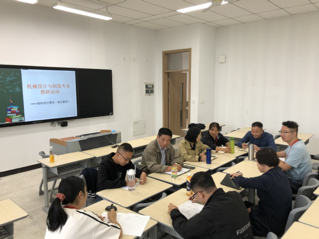 2022年10月4日,机械设计与制造教研室全体老师在思学楼110教室,展开了以《如何进行理实一体化教学》为主题的研讨,会议由教研室主任孙菁老师主持。