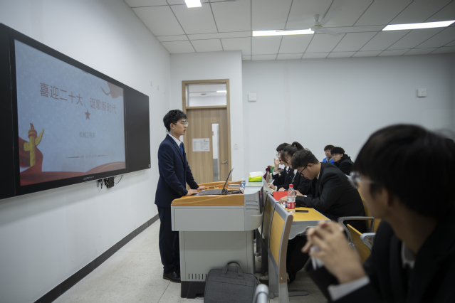 乐投线上平台(集团)官方网站机械工程系团总支于11月23日晚开展信仰公开课——新思想公开课,主题为“喜迎二十大 讴歌新时代”。机械工程系团总支全体成员及2022级班长共同参与学习。本次团课有团总支副书记王可仪主讲。