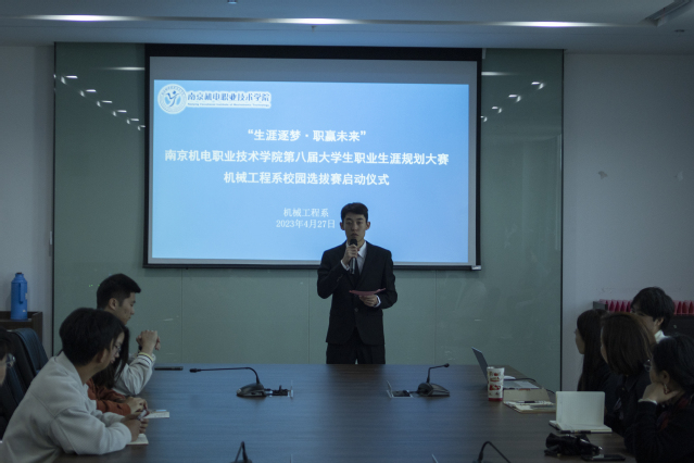 4月27日中午,“生涯逐梦,职赢未来”--乐投线上平台(集团)官方网站第八届职业生涯规划大赛机械工程系校园选拔赛启动仪式在育德楼303会议室举行。本次活动旨在为有意向参与职业生涯规划比赛的学生进行动员,为对于职业生涯存在困惑的同学提供细致的规划指导。机械工程系党支部书记李杰,就业创业中心主任沈小军,21、22辅导员,学生代表们参加本次启动仪式。