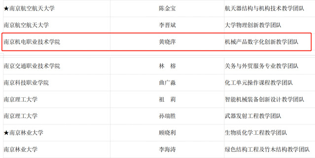 近日,省教育厅公布评选结果,机械工程系黄晓萍主任带领的“机械产品数字化创新教学团队”脱颖而出,被评为江苏高校“青蓝工程”优秀教学团队,填补了我校省级优秀教学团队的空白,标志着我校教学团队建设取得了历史性突破。