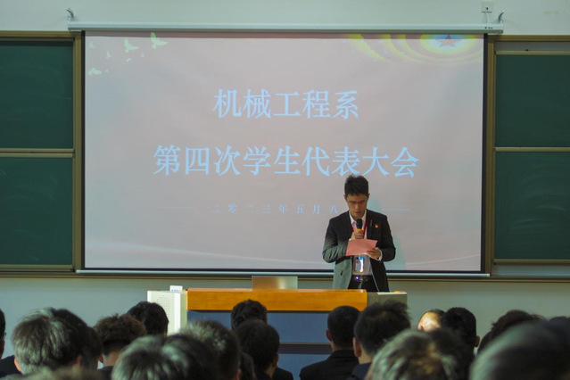 2023年5月8日下午5点30分,乐投线上平台(集团)官方网站机械工程系第四届学生代表大会在善学楼101顺利召开。出席本次大会的有机械工程系主任毛奇、党支部书记李杰、团总支书记吴婧佳、学生会指导老师顾航、全体辅导员老师及104名学生代表。大会由机械工程系学生会主席韩田源主持。