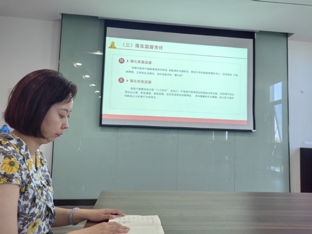 2023年6月27日,机械工程系全体党员在育德楼303集中学习《乐投线上平台(集团)官方网站关于加强党员干部“八小时外”监督管理实施办法(试行)》,党支部副书记李杰领读学习该文件精神。
