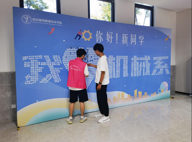 本次迎新活动中,机械工程系团总支在系党组织的领导下与系学生会通力合作,组织迎新志愿服务活动,并精心策划设置“你好,新同学”照片墙特色活动。“你好,新同学”照片墙由机械工程系全部2023级新生的姓名组成“我”“机械系”字样,并由2023级新生的“最美证件照”组成爱心图样,共同拼合成“我爱机械系”。照片墙的创意吸引了不少新生前来寻找自己的名字并拍照打卡,希望机械系萌新们能在学校度过心满意足的三年,真正做到“我爱机械系”。