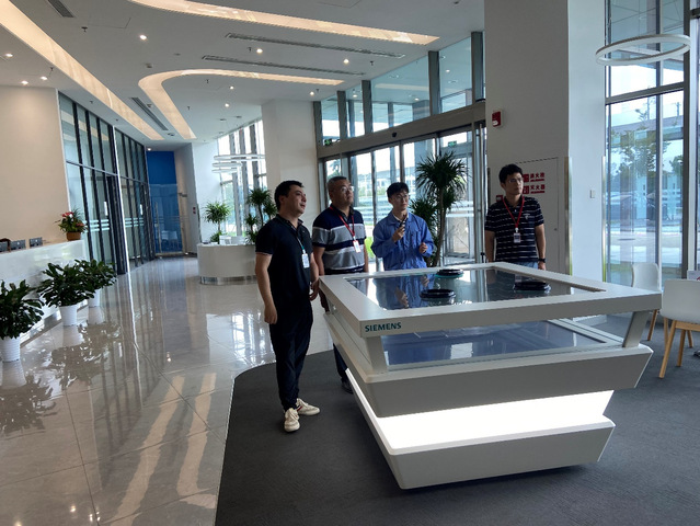 西门子数控(南京)有限公司是知名的数字化控制组件研发生产企业,主要从事数控系统、驱动器、可编程逻辑控制器等产品的研发和制造。在参观交流过程中,工作人员通过现场讲解和播放3D微视频向大家介绍了企业文化、车间环境、产品特色。随后,工作人员带领大家参观了公司的智能化存储仓库和两个数字化生产工厂,通过技术人员的讲解,大家对数控电子元器件的自动化生产的工艺流程、产线效率精益化管理模式,协同生产线的组建等生产技术及管理理念都有了初步的了解,感受到了现代化工厂的宏伟与智能,深刻体会了数字孪生在工厂建造过程中的应用。