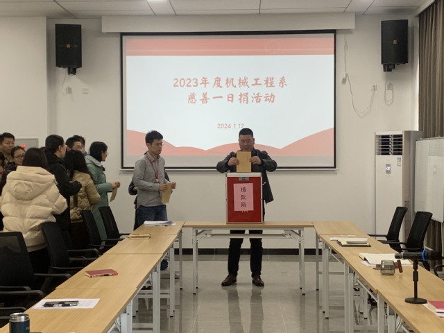为深入贯彻落实党的二十大精神,弘扬中华民族扶危济困、助人为乐的传统美德,贯彻以人为本的理念,机械工程系党支部积极响应上级党委要求于2024年1月12日在笃行楼401开展“慈善一日捐·济困送温暖”的爱心主题活动。