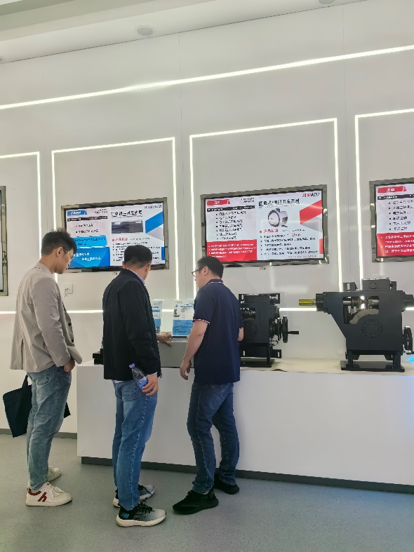 首先,公司技术部项目经理张海带大家参观了公司业务展厅,全面介绍了公司产品情况,德速智能成立于2009年,是一家集研发、生产和销售为一体的国家级高新技术企业,深耕工业母机核心功能部件领域多年,产品包括数控机床刀库、机械/静压/DD转台、机械/气浮/电主轴、同步电机、矿物质铸件床身等核心功能部件和五轴光机产品等,配备世界一流的检测、检验设备,已成功向市场供应了十万台以上的功能部件,完成了进口部件的国产化替代。数控机床共有六大核心功能部件,德速产品占整台机床材料成本的60%。