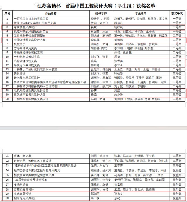 近日,由中国机电装备维修与改造技术协会主办,中机维工艺装备分会承办的“江苏高精杯”首届中国工装设计大赛历时三个月圆满结束。本次大赛行业企业和职业院校同台竞技,我系师生组队共参赛10个项目,表现突出,成绩斐然,获奖率达100%。