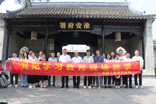 为了从严从实有序推进党纪学习教育,把《中国共产党纪律处分条例》学深、学透、学到位,自觉用党纪校正思想和行动,进一步强化全体党员廉洁自律意识和担当作为意识。5月24日下午,机械工程系党支部组织基全体党员参观淮安府署,开展实景“清廉守正,严于律己”廉政党课教育廉政文化教育,引导支部全体党员在新时代、新征程中清廉守正,担当使命。