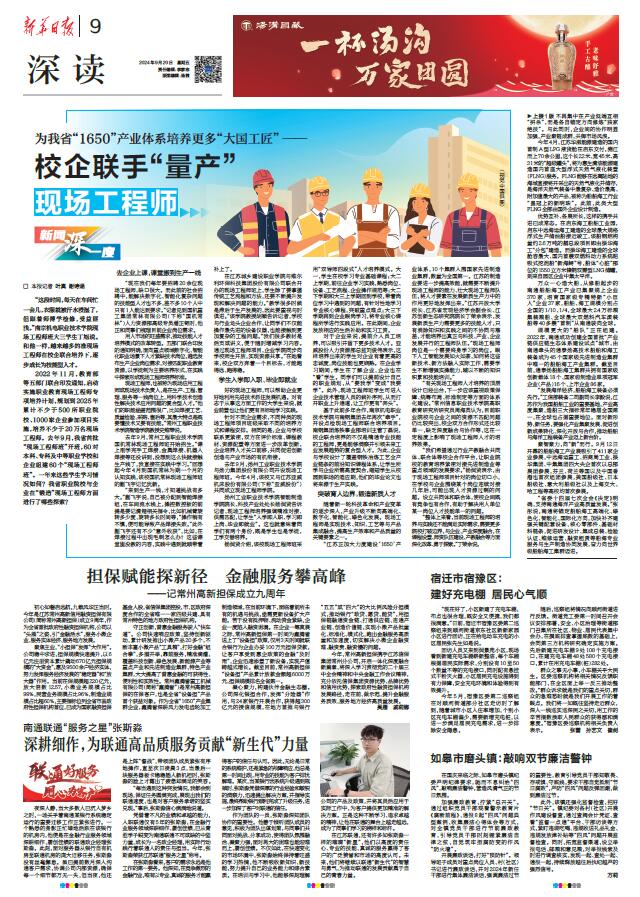 日前,《新华日报》2024年9月20日第9版报道校企联手“量产”现场工程师,其中采访乐投线上平台(集团)官方网站现场工程师班大三学生丁旭,全文如下: