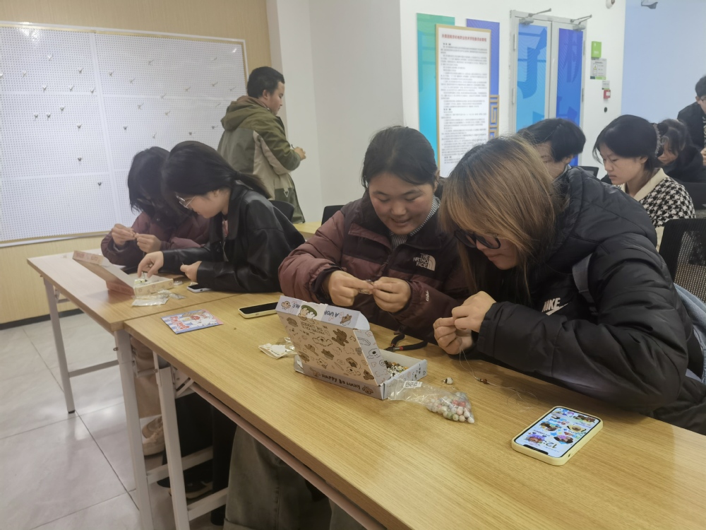 与好友知己相约相伴而来,共同完成一串专属于自己的“心语”手串,相信对于在场的每一位同学来说,都是一场特别的体验。活动在同学们的欢声笑语中圆满落下帷幕。