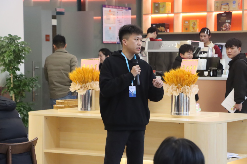在学生分享环节,机械工程系徐瑞、徐国耀,信息工程系陈凯文、臧超同学上台,讲述了自己一个学期以来转本学习的心得体会。他们分享了在平衡日常课程与转本复习过程中遇到的挑战,以及如何克服困难、坚持不懈的学习历程。这些真实而生动的分享,引起了台下同学们的强烈共鸣,现场气氛热烈而融洽。