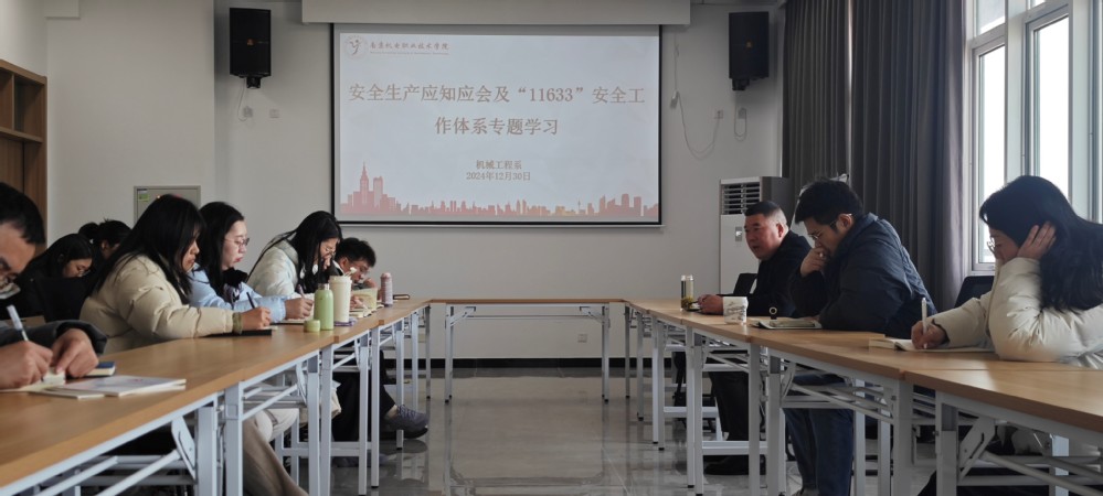 2024年12月30日,为强化安全生产意识,提升安全管理水平,机械工程系组织了一场关于安全生产应知应会及“11633”安全工作体系的专题学习活动,全系教职工积极参与,共同筑牢安全生产防线。
