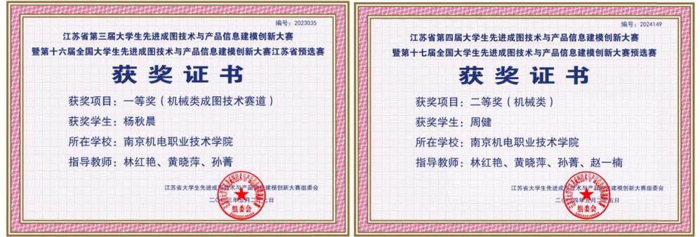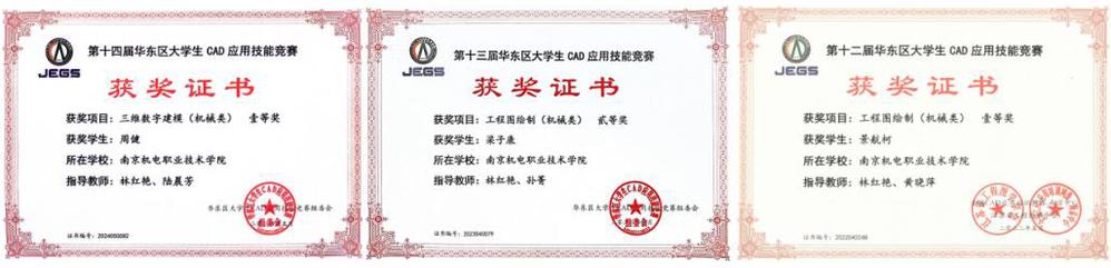 2020年-2024年,每年参加华东区大学生CAD应用技能竞赛,获得一等奖6次、二等奖4次、三等奖5次、团体一等奖1次、团体二等奖2次。