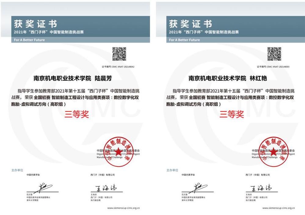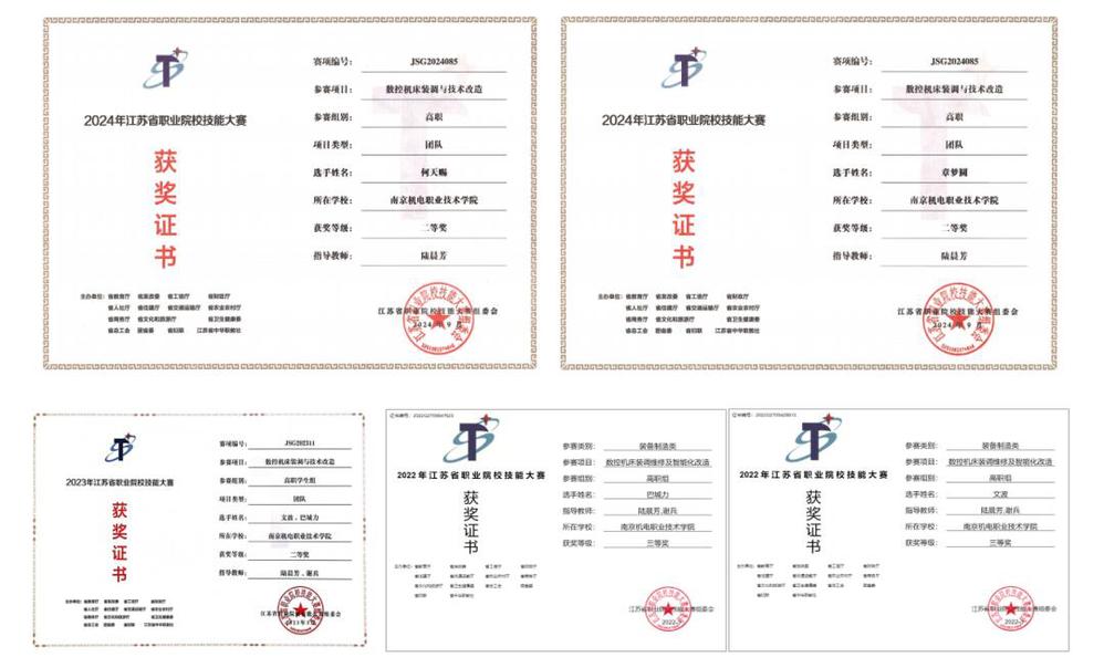 2022年-2024年,每年参加江苏省职业院校技能大赛数控机床装调与技术改造赛项,获得二等奖2次、三等奖1次。