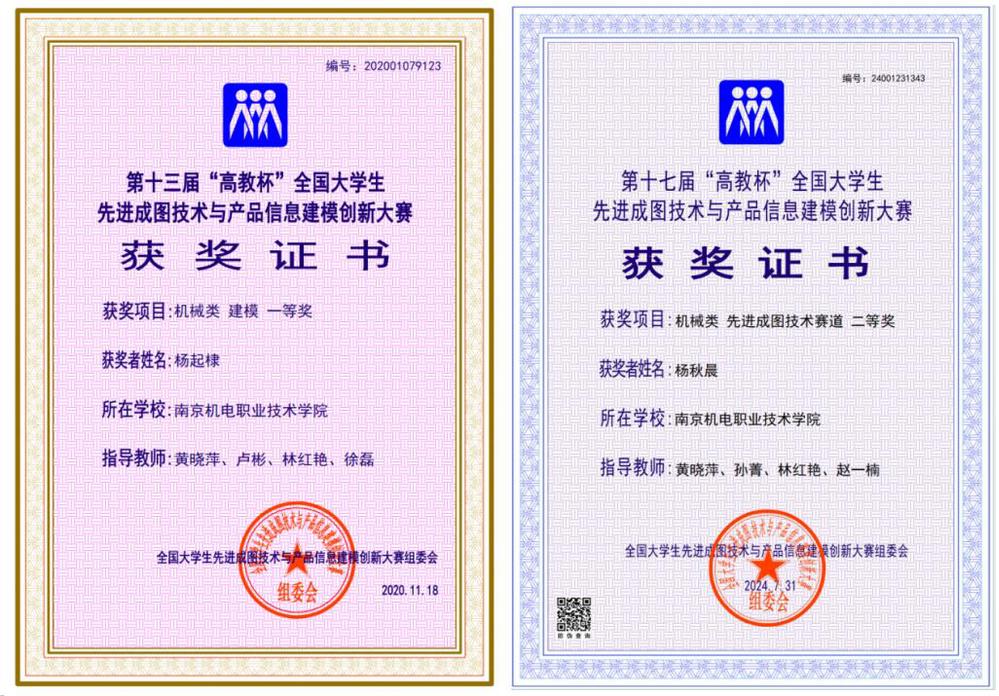 2020年-2024年,每年参加全国大学生先进成图技术与产品信息建模创新大赛,获得国赛一等奖1次、二等奖3次、三等奖6次,团体三等奖4次;省赛一等奖3次、二等奖7次、三等奖14次、团体二等奖1次、团体三等奖3次。