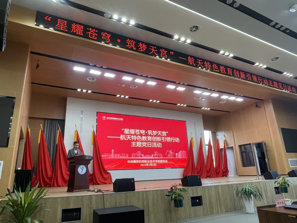 活动伊始,学校党委书记、校长周庆礼发表了热情洋溢的欢迎词,他代表全校师生向拨冗出席本次活动的各级领导、嘉宾表示最热烈的欢迎和最诚挚的感谢,并特别提到了学校近年来在航天领域所取得的显著成就。他特别提到了我校师生牵头研制的“南京号”暨中国青少年科普卫星八一08星的成功发射和入轨,这是全国职业院校发射的首颗科普卫星,也是学校产教融合、科教融汇、赓续航天精神的创新实践。展望未来,周庆礼表示学校将继续秉承航天精神,勇于探索、敢于创新,不断提升办学水平和综合实力。学校将进一步加强与航天领域的合作与交流,推动产学研深度融合,为培养更多优秀的航天人才贡献力量。