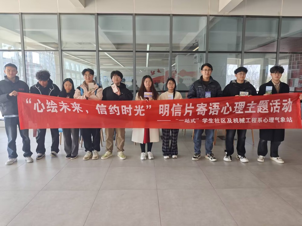 为持续推进学校立德树人、五育并举,努力构建德智体美劳全面培养的育人体系,不断提升大学生心理健康素养,积极促进学生身心健康发展,“一站式”学生社区及机械工程系心理气象站共同于2025年3月19日在学生食堂前小广场,开展了一场以“心绘未来,信约时光”为主题的明信片寄语活动,现场吸引了众多学生前来参加。