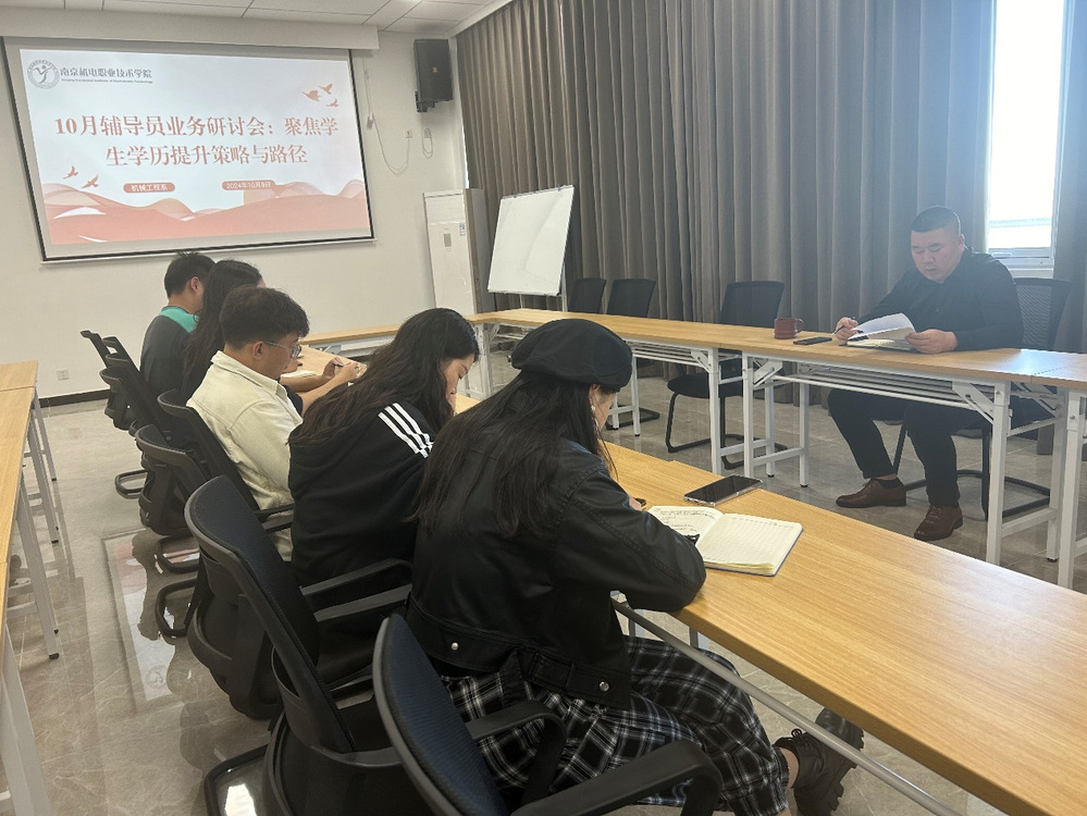 为助力学生拓宽职业发展赛道,提升学历层次与综合竞争力,10月9日下午,乐投线上平台(集团)官方网站机械工程系在系部会议室召开辅导员业务研讨会。会议由系党支部副书记李杰主持,全体辅导员参会,围绕“学历提升策略与路径”展开深入研讨,辅导员王晨歌老师作专题经验分享。