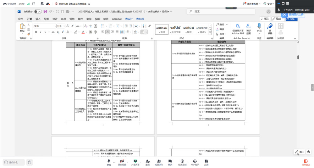 为精准对接产业需求,提升专业人才培养方案的科学性与规范性,机械工程系于2025年8月16日组织召开2025级专业人才培养方案线上论证会。此次会议对机械设计与制造、数控技术等5个专业的人才培养方案进行论证优化,机械工程系主任毛奇、书记胡枫及各专业负责人参会,教学主任黄晓萍主持会议。