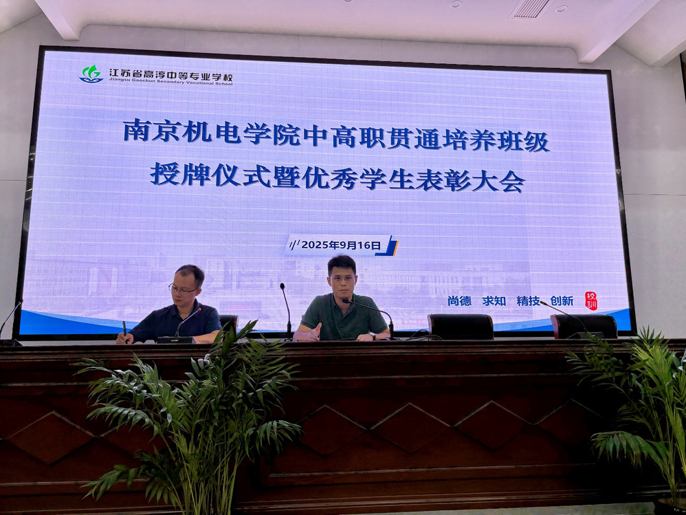 活动伊始,在高淳中专报告厅举行了2024-2025学年现代职教体系贯通培养项目“优秀学生”表彰仪式。毛奇宣读了表彰决定,对2024级“3+3”分段培养项目中表现突出、成绩优异的学生予以表扬。双方领导共同为获奖学生颁发奖品,勉励大家以荣誉为新起点,不断提升专业素养与综合能力。