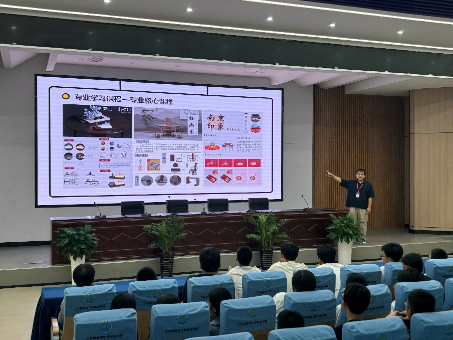 随后,工业设计专业教师侯宏平为机电技术应用专业2025级新生讲授“开学第一课”。侯宏平系统介绍了工业设计专业的培养模式、课程体系、合作企业、就业前景及升学路径,并通过互动交流激发新生对专业学习的兴趣,帮助其树立清晰的成长目标。