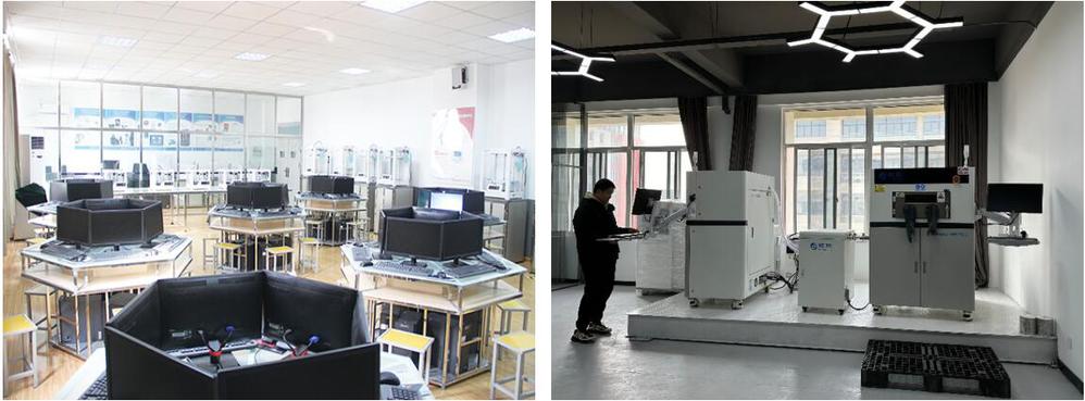 实验实训室主要有钳工实训室、电工实训室、液压实训室、虚拟仿真机房、数控车/铣车间、数字化检测中心、机械设计创新实验室、数维实训室、多轴加工实训室、南京机电铖联齿科3D打印产业学院、PLC实训室、机电设备装调实训室、工业机器人实训室等。