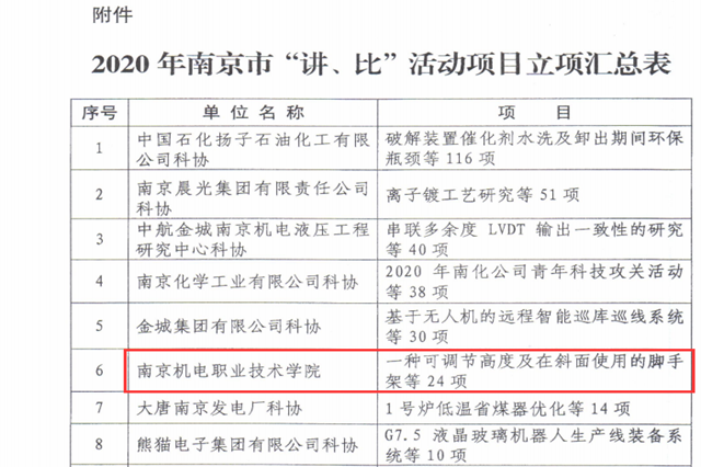 2020年3月,南京市科协发布了《关于组织开展2020年度“讲理想、比贡献”活动立项申报工作的通知》。收到通知后,学院科协高度重视,依托近年来学院创新创意创业大赛获奖作品、师生优秀创客作品,共组织申报讲比项目24项。4月份,经市科协研究决定,我院科协申报的24项“讲、比”活动项目全部立项。