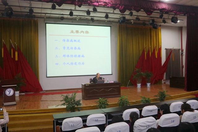 张博士用专业严谨的语言向同学们普及了什么是传染病及传播途径,新型冠状病毒肺炎、流行性脑脊髓膜炎、腺病毒、诺如病毒、肺结核等五种常见的传染病症状及预防措施,并以新型冠状病毒、肺结核防空等典型案例向同学们介绍了群体防控措施和个人防疫行为。他建议学校传染病防控工作要做到“早发现、早报告、早隔离、早诊断、早治疗”五早,要重视“管理传染源、切断传播路径、保护易感人群”三环节。