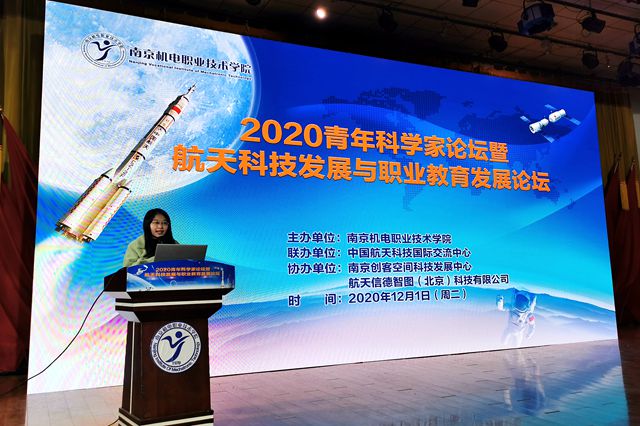 12月1日,2020年青年科学家论坛暨航天科技发展与职业教育发展论坛在乐投线上平台(集团)官方网站举行,此次论坛邀请了航天信德智图(北京)科技有限公司遥感技术部副部长史岩岩、航天创客(北京)科技有限公司技术总监杨尚文、南京创客空间创始人郑岩峰、乐投线上平台(集团)官方网站蓝岛创客空间副主任王国珍四位专家作主讲嘉宾。中国航天科技国际交流中心产教融合处处长朱涛、南京市科学技术协会企事业科协联络部部长樊忠卫、乐投线上平台(集团)官方网站副院长刁爱军等领导出席活动,乐投线上平台(集团)官方网站教师与学生代表400余人听取了论坛报告。论坛由科研及校企合作处王子灿老师主持。