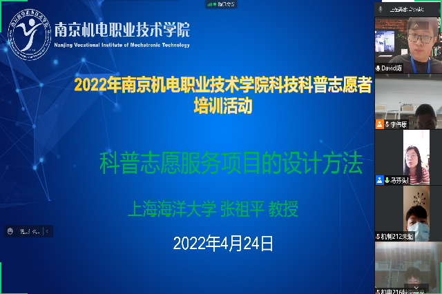 4月24日,为推动我校科技志愿服务规范化、制度化、常态化工作,有效发挥科技工作者之家的作用,我校科协邀请上海海洋大学教授、博士生导师张祖平老师为我校300名科技科普志愿者开展主题为科普志愿服务项目的设计方法的培训。