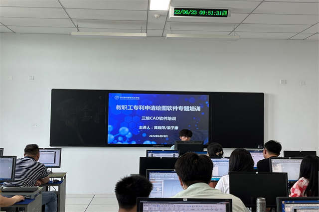 为提高学院专利工作质量,增强学院教职工专利申请绘图能力,2022年6月23日,学校成功举办教职工专利申请绘图软件专题培训。全校来自各系部及部门的105名教职工参与了本次培训。
