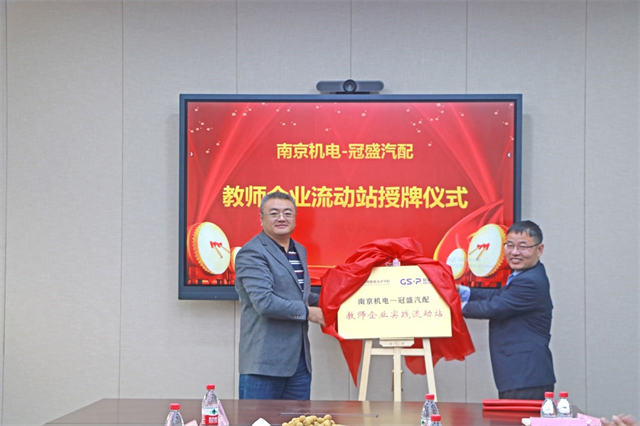 为贯彻落实《国家职业教育改革实施方案》以及教育部等九部委印发的《职业教育提质培优行动计划(2020—2023)》,进一步深化校企合作,强化高素质“双师型”教师队伍建设,推进教师深入企业开展实践锻炼,2022年11月9日上午,我校受邀前往南京冠盛汽配有限公司举行“南京机电-冠盛汽配教师企业实践流动站”签约授牌仪式。南京冠盛汽配有限公司总经理侯廷锋,OE技术部经理田金星,学校党委委员、副院长刁爱军,科研及校企合作处处长李木香,机械工程系书记李杰,企业导师及机械系进站教师共同见证了学校首家教师企业实践流动站的成立。