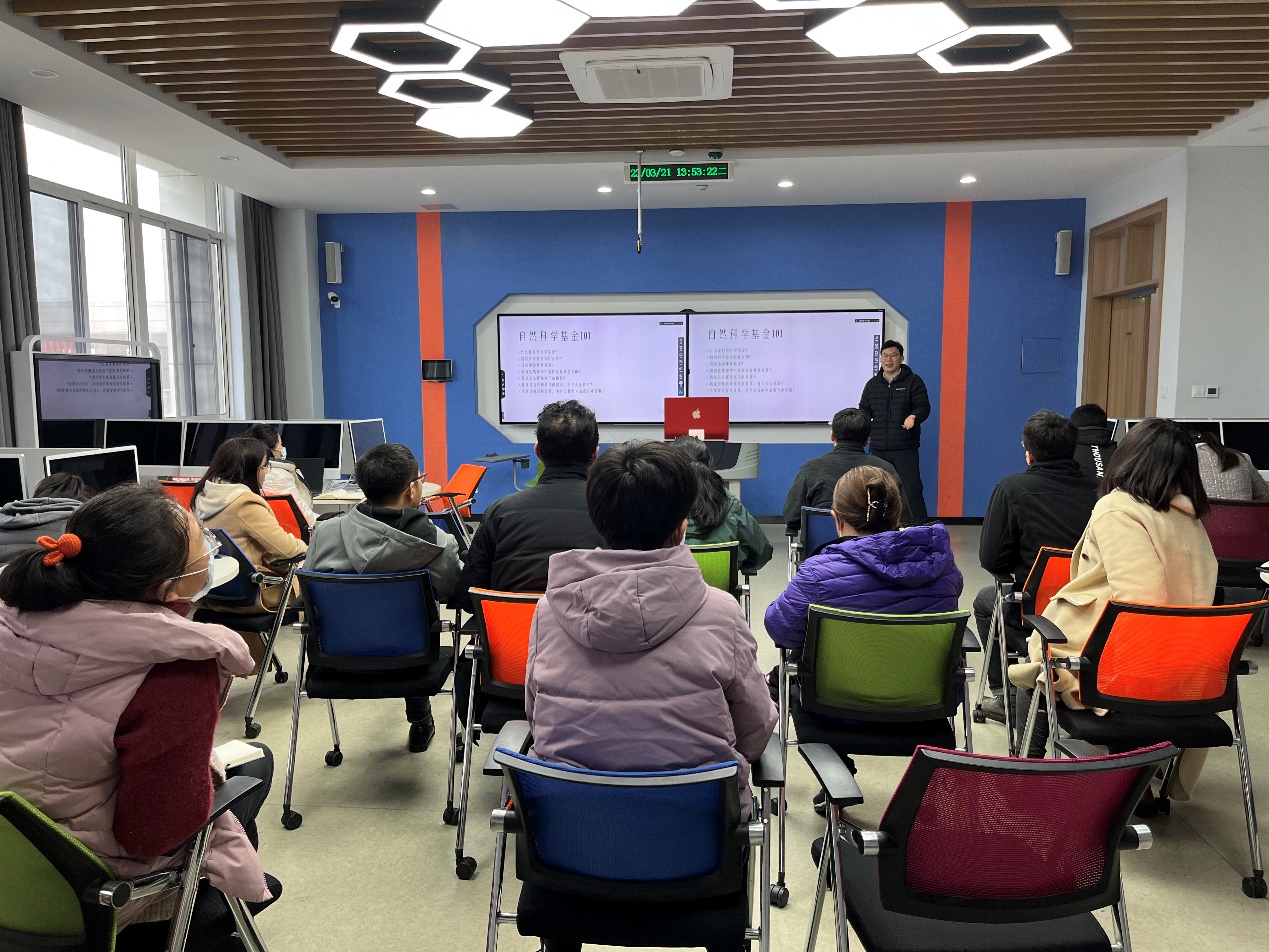徐晓杰作了主题报告《自然科学基金项目的评审与申报》,结合亲身经历分享了国家及江苏省自然科学基金面上项目的申报要求和评审原则,并从形式审查、关键科学问题的凝练、常见误区等方面介绍了申请书的撰写基本规范与要求。徐教授鼓励教师关注并积极申报国家自然科学基金项目。