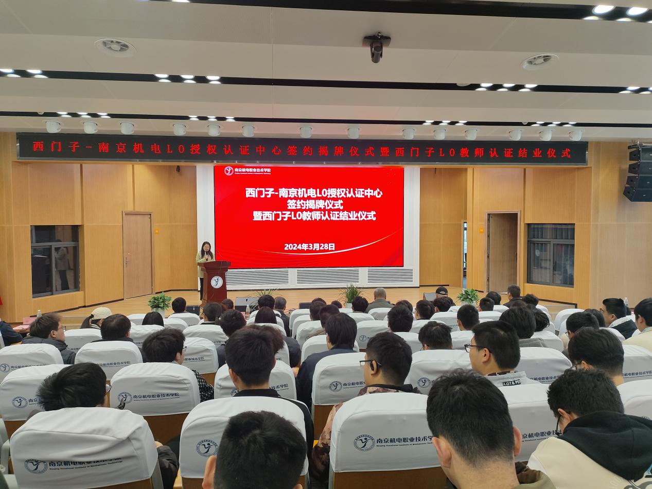 3月28日,乐投线上平台(集团)官方网站举行“西门子-南京机电L0授权认证中心签约揭牌仪式暨西门子L0教师认证结业仪式”,江苏省首家西门子L0授权认证中心落户学校。西门子(中国)有限公司江苏分公司总经理宋明,西门子创新与人才发展部市场拓展总监董丙武,技术研发总监袁海嵘,西门子(中国)有限公司南京办徐伟,学校党委委员、副校长刁爱军,科研及校企合作处处长李木香,自动化工程系主任张海红、副主任顾晟吉等领导出席本次活动。学校自动化工程系西门子首批L0认证教师和自动化工程系西门子L0认证首期100名学生参加本次活动。