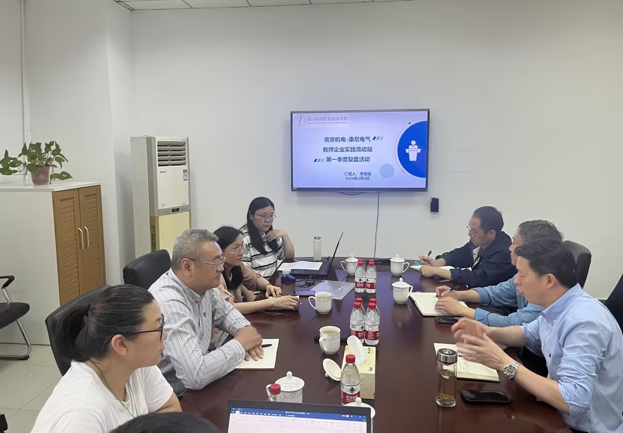 为展示教师企业实践流动站阶段运行情况与成效,2024年5月10日,南机电—康尼电气教师企业实践流动站2024年第一季度复盘交流会在南京康尼电气技术有限公司举行。南京康尼电气技术有限公司总经理马涛,市场部部长李向阳,技术部副部长张中辉,学校党委委员、副校长刁爱军,科研及校企合作处处长李木香,自动化系系部主任张海红,流动站校内负责人李银露及进站教师代表参加了本次复盘活动。