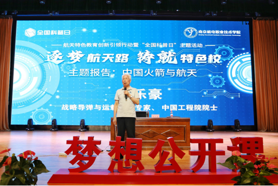 9月6日,在全国科普日来临之际,乐投线上平台(集团)官方网站顺利举办《“逐梦航天路,铸就特色校”——航天特色教育创新引领行动》主题报告活动。本次活动由南京市科学技术协会主办,乐投线上平台(集团)官方网站承办。战略导弹与运载火箭专家、中国工程院院士龙乐豪,中国航天科技国际交流中心副主任周岫彬,南京市教育局副局长田家英,南京市高淳区政府副区长邱峰,南京新工投资集团总经济师洪薇,上海航天专家、高级技师、上海航天技能实训中心主任秦文津,南京高职园党工委副书记、管委会主任孔桂红,南京机电产业集团副总经理沈达和乐投线上平台(集团)官方网站党委书记、校长周庆礼等领导及600余师生参加了本次活动。