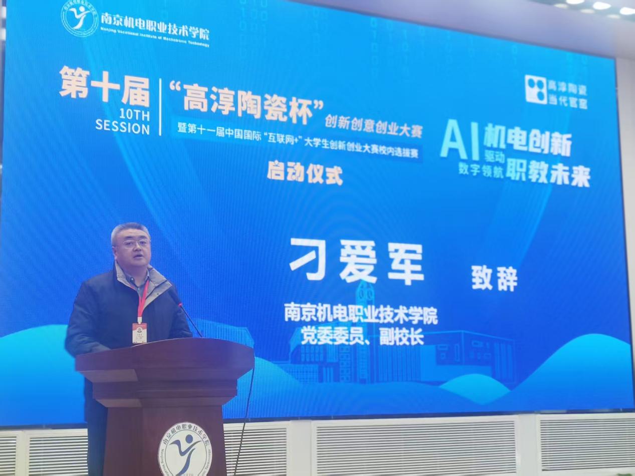 2025318日,“AI驱动机电创新,数字领航职教未来”乐投线上平台(集团)官方网站第十届“高淳陶瓷杯”创新创意创业大赛暨第十一届中国国际“互联网+”大学生创新创业大赛校内选拔赛启动仪式在乐学楼102报告厅举行。南京市高淳区科技局局长、科协主席马启顺,南京高淳高新技术产业开发区管理办公室分管负责人倪友谊,南京高等职业教育创新创业园发展服务中心主任吴凯,江苏高淳陶瓷股份有限公司党委副书记、副总经理周玉明,学校党委委员、副校长刁爱军等领导出席启动仪式。300余名师生代表参加活动,共同见证大赛开幕。
