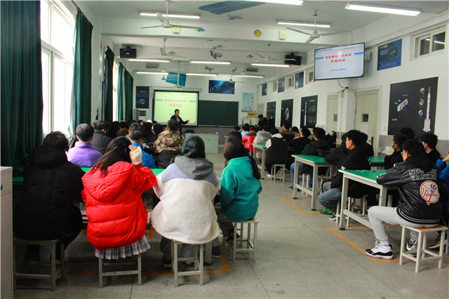 蓝岛创客空间主任王国珍为开班仪式致辞。王主任勉励各位同学潜心学习,不断提升自身的创新实践能力。他说,学院在10月份和12月份先后邀请大国工匠王曙群和国际宇航科学院院士赵文波为各位同学带来精彩讲座,希望各位同学以王曙群先生和赵院士为榜样,传承工匠精神和中国航天精神,在思想上和行动上沉下心来学习,做好时间管理,协调好学校各项事务,熟练掌握创客工具的使用,锻炼创新实践能力,努力提升创客项目质量,为自身的发展负责,为学校创客校园建设贡献出自己的力量。