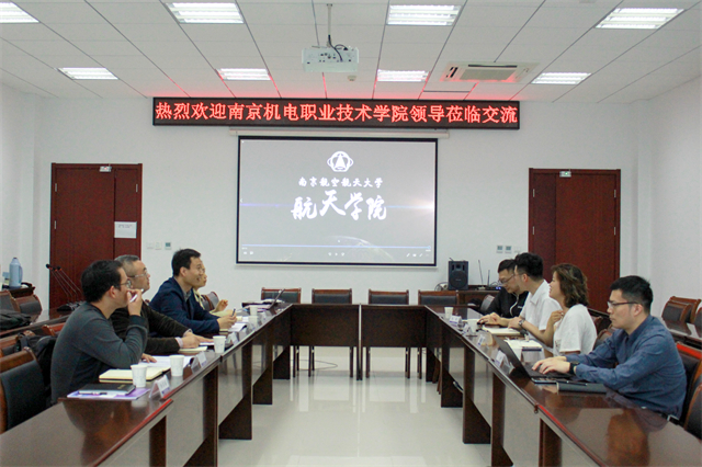南京航空航天大学航天学院王寅院长热情接待了刁院长一行。王院长向刁院长介绍了南京航空航天大学航天学院的基本概况。王院长说,推动中国航天事业的发展不仅需要本科生、研究生的科技研发能力,也需要职业学校学生的实践应用能力。乐投线上平台(集团)官方网站是我国率先与中国航天联手的职业学校,必将为中国航天产业发展提供强有力的推动。