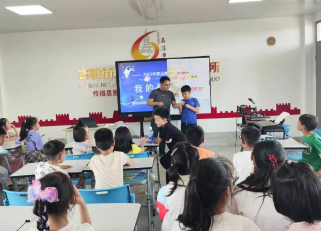 为全面展示我校职业教育的办学特色,营造全社会关注职业教育、重视职业教育的良好氛围,我校于5月28日在高淳区古柏小学开展2023年职业教育创新周系列活动——我的航天梦。本次活动由高淳职业教育集团主办,乐投线上平台(集团)官方网站与高淳区古柏小学共同承办,古柏小学、宝塔小学、滨湖小学等共6个班学生参加了本次活动。此次活动以“我的航天梦”为主题,由蓝岛创客空间主任王国珍带队,蓝岛创客空间教师黄克瑶、候俊、朱妍焘以及双创班的学生共同前往。