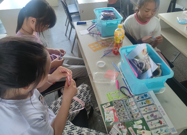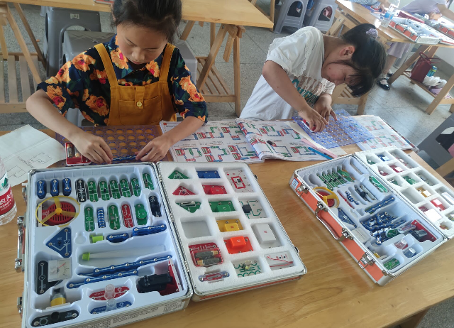 此外,当天还开展了电子积木、创意剪纸等活动。学生们玩得不亦乐乎,整个活动气氛轻松愉快,不时传出欢声笑语,学生们在完成制作后拿着自己的作品满载而归。