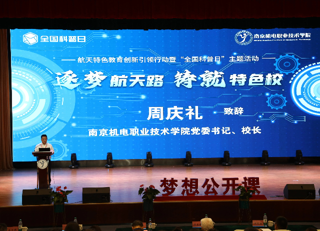 接着,周庆礼对各位嘉宾及师生的到来表示热烈的欢迎!中国火箭与航天事业,是中华民族伟大复兴征程中的壮丽篇章。近年来,乐投线上平台(集团)官方网站紧跟航天产业发展人才需求,结合学校专业优势,率先开设“卫星通信与导航技术”等专业,率先建设卫星地面接收站和测控中心,积极培养航天领域技术技能人才。2024年1月17日,由我校牵头研制的全国职业院校第一颗科普卫星“南京号暨中国青少年科普卫星八一08星”搭载天舟七号货运飞船发射成功。本次诚邀龙院士在我校举办《中国火箭与航天》讲座,学校希望通过本次讲座让更多的同学了解航天、热爱航天,为我国航天事业的发展注入新的活力。