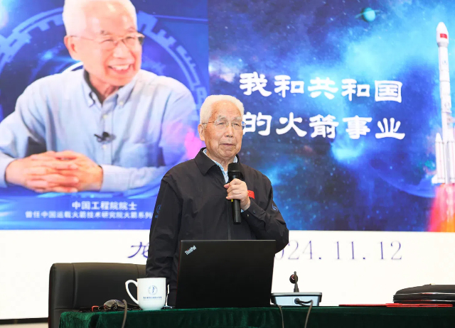 随后,龙乐豪院士为大家带来了“我和共和国的火箭事业”主旨报告。在报告中,他回顾了自己投身火箭事业的漫长历程,每一个阶段都充满了挑战与突破。龙乐豪院士生动地讲述了在我国火箭事业的起步阶段,那时技术基础薄弱、条件艰苦,但科研人员凭借着坚韧不拔的毅力和对航天梦想的执着追求,一步步摸索前行。随着时间的推移,我国的火箭事业逐渐壮大,从最初的小型火箭到能够承担重大航天任务的巨型运载火箭,每一次的跨越都凝聚着无数科研人员的心血。他还展示了一些重大航天发射任务的珍贵照片和视频资料,让师生们仿佛身临其境,感受到了火箭点火升空时那震撼人心的力量和场面,现场不时爆发出阵阵惊叹声和热烈的掌声。