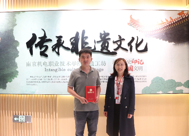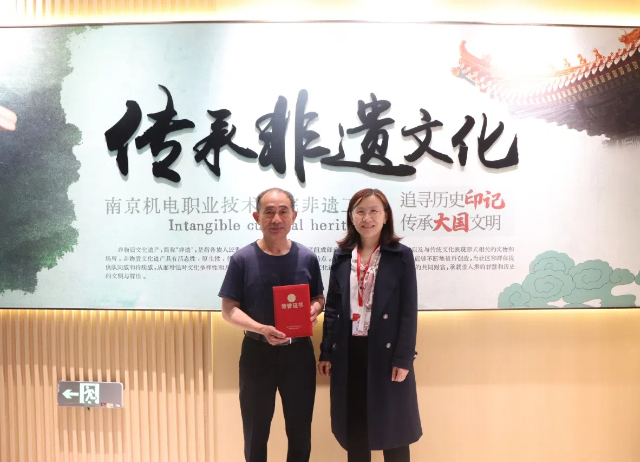 活动的最后,学校科研处处长李木香为木工非遗大师夏元安、夏磊及板鹞风筝非遗大师何金泉、吴锦华、沈建华颁发非遗导师聘书;蓝岛创客空间、信息工程系主任王国珍颁发扬州精细木作工坊创新创业实践教育基地和何金泉板鹞风筝创新创业实践教育基地铜牌。