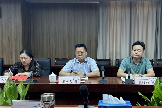 随后,周庆礼书记对南京科技职业学院的热情接待表示衷心感谢,就我校目前整体发展情况进行了简单介绍,学校希望通过南京科技职业学院的指导帮助,建立对标学习1+1帮扶工程,对我校国际交流与合作项目进行帮扶与指导。