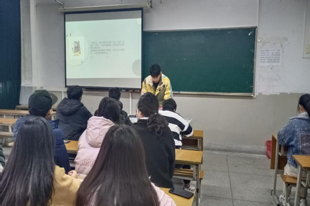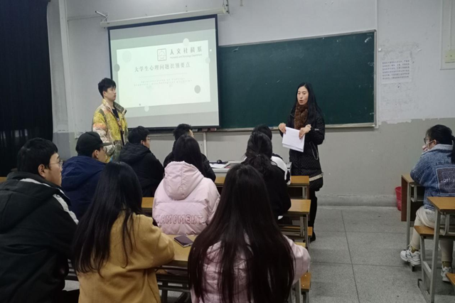 1月5日下午,由人文社科系心理气象站站长陈文继老师主持的“大学生心理问题识别”培训正在进行中。