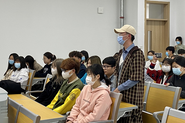 在最后的互动环节中,数字媒体应用技术201班团支部书记王嘉伟同学分享了自己的寒假实践中遇到的困难、获得的收获和总结的经验。他认为在实践活动中,最大的好处就是找准自我定位。