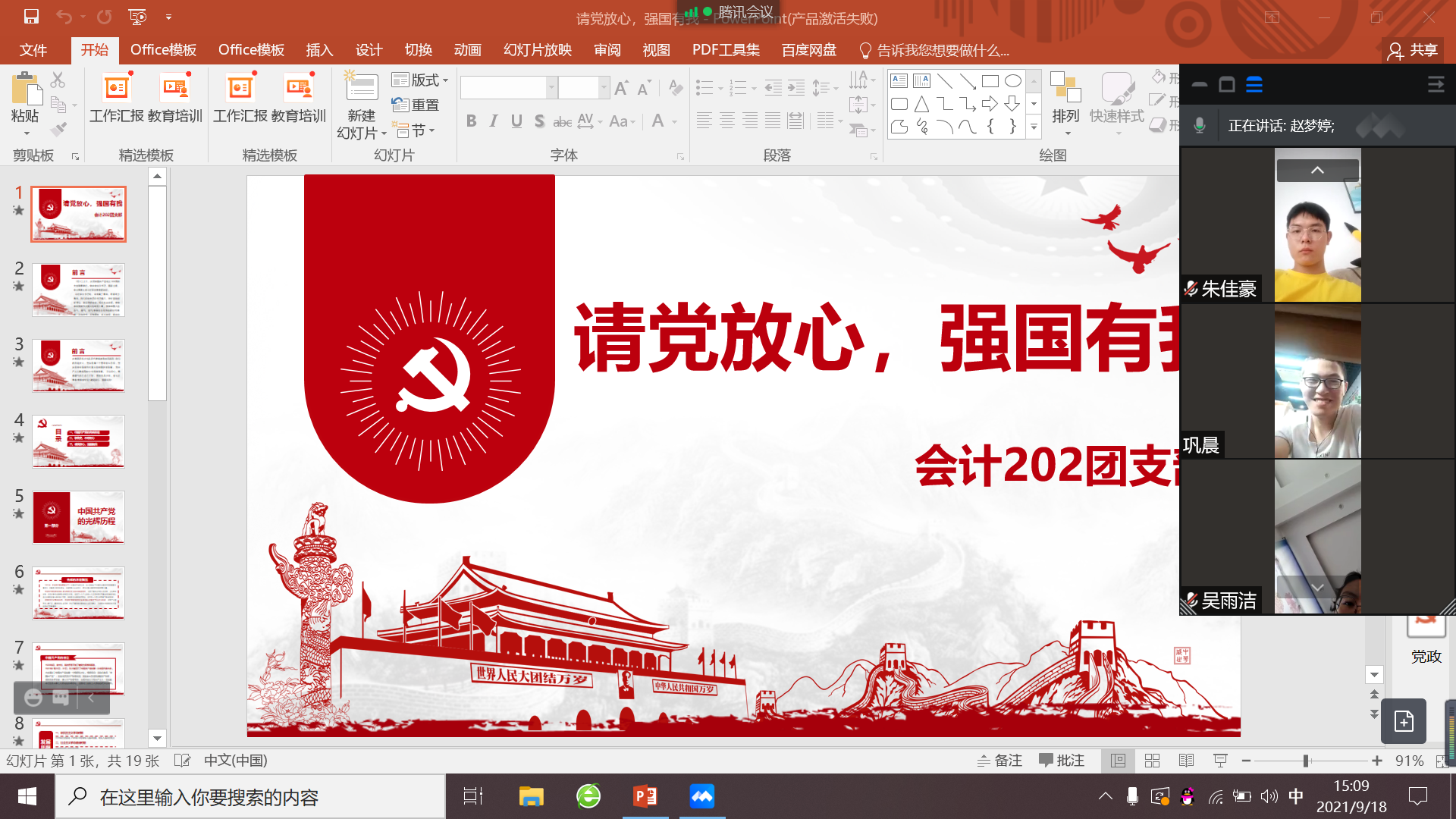 7月1日,庆祝中国共产党成立100周年大会在北京天安门广场隆重举行。习近平总书记出席大会发表重要讲话,在讲话中指出新时代的中国青年要以实现中华民族伟大复兴为己任,增强做中国人的志气、骨气、底气,不负时代,不负韶华,不负党和人民的殷切期望!为了使团员青年能够牢记总书记的殷切期望,能够以实现中华民族伟大复兴为己任,人文社科系团总支下辖各团支部陆续召开线上“请党放心,强国有我”主题素养公开课。
