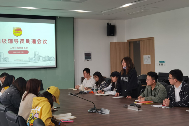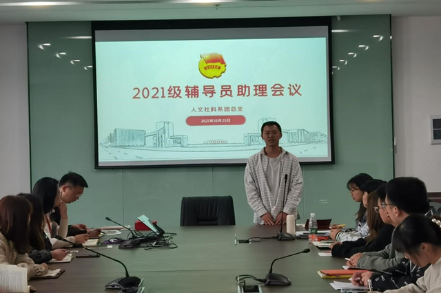 10月25日中午,人文社科系团总支在育德楼210会议室开展2021级辅导员助理聘任仪式暨第一次全体会议。人文社科系党支部副书记叶绘出席仪式,系办公室主任兼团总支书记杨军、2021级新生辅导员杨辰辰、梁娟娟、吴瑶老师及十名新生辅导员助理参加会议。会议由杨军老师主持。
