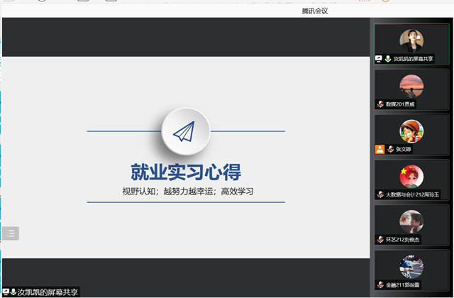 为对系部学生创业意识有个正确的引导,人文社科系于2021年12月30日晚上19:00-21:00在线上召开了创业分享会。出席本次会议的有人文社科系党支部副书记叶绘以及人文社科系部分学生。创业分享的嘉宾是来自人文社科系成功创业的两名学生,会计161贾云峰与环艺171顾绍福为了延续就业分享的惯例,同时邀请环艺171赵志与视觉191汝凯凯两位同学分别从就业、实习做分享。
